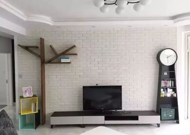 喜歡現(xiàn)代工業(yè)風(fēng)的年輕人,直接刷白的電視墻顯得太單調(diào)了,那么可以考慮刷一面文化磚電視墻,瞬間讓客廳顯得文藝精致不少。