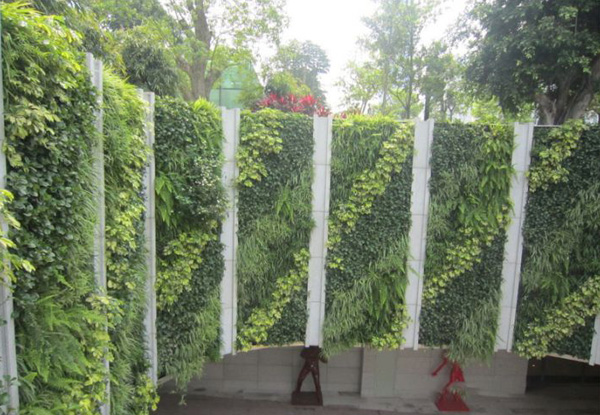 植物墻是用綠色植物編植成的墻體,是利用植物的根系對生長環(huán)境的超強自適應能力,使自然界中棲息于平地上的植物永久地生長于垂直的建筑墻面,為建筑設計和建筑裝飾提供一種新型的有機生態(tài)材料。綠植墻特點:凈化空氣、低碳節(jié)能、美化城市、隔離噪音、溫度調(diào)節(jié)、使城市漫步?jīng)鏊?、生態(tài)修復、生態(tài)保健、綠色營銷、資產(chǎn)增值。