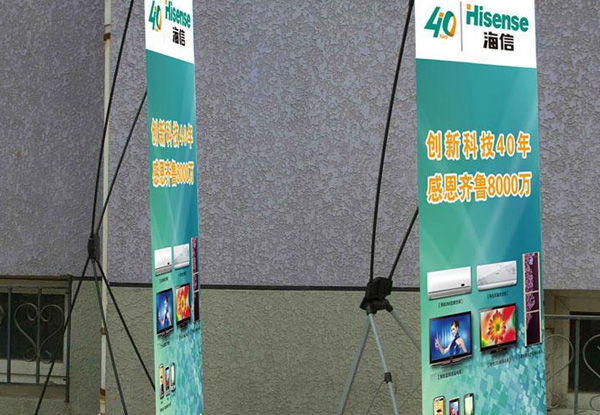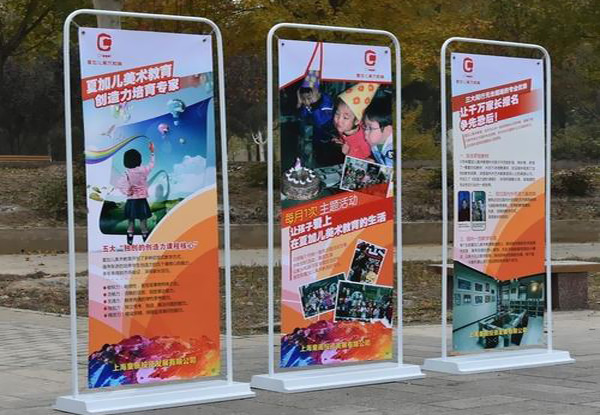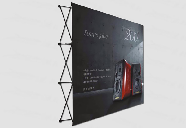 整體構(gòu)件,無(wú)需復(fù)雜組裝過(guò)程,體積小方,方便收起和攜帶,卡好畫面和展架的掛點(diǎn)即可展示內(nèi)容。受力不錯(cuò),可支起較大面積的噴繪畫面,常用尺寸有60*160厘米或80*180厘米。 常用于公司辦公室、會(huì)議室、公司前臺(tái)等公共場(chǎng)所,使用方便,宣傳力度好,是一款高性價(jià)比較產(chǎn)品。