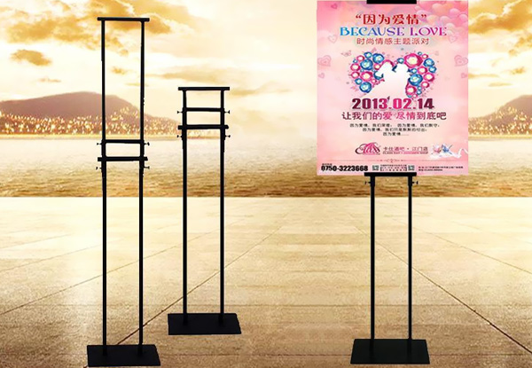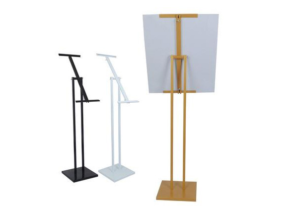 單面/雙面掛畫架,又稱為POP掛畫架,輕巧便攜、造型簡(jiǎn)練、安裝方便、外觀大方,有單面或雙面安置畫面可選,能起到很好的展示宣傳效果。底座體積較小,不占用空間,畫面寬度任意,一般適配50*70厘米或60*120厘米KT板,尺寸都可以自由調(diào)節(jié),畫架最高可調(diào)至2米,適用于企業(yè)產(chǎn)品宣傳、酒店,銀行,超市等營(yíng)銷活動(dòng)。